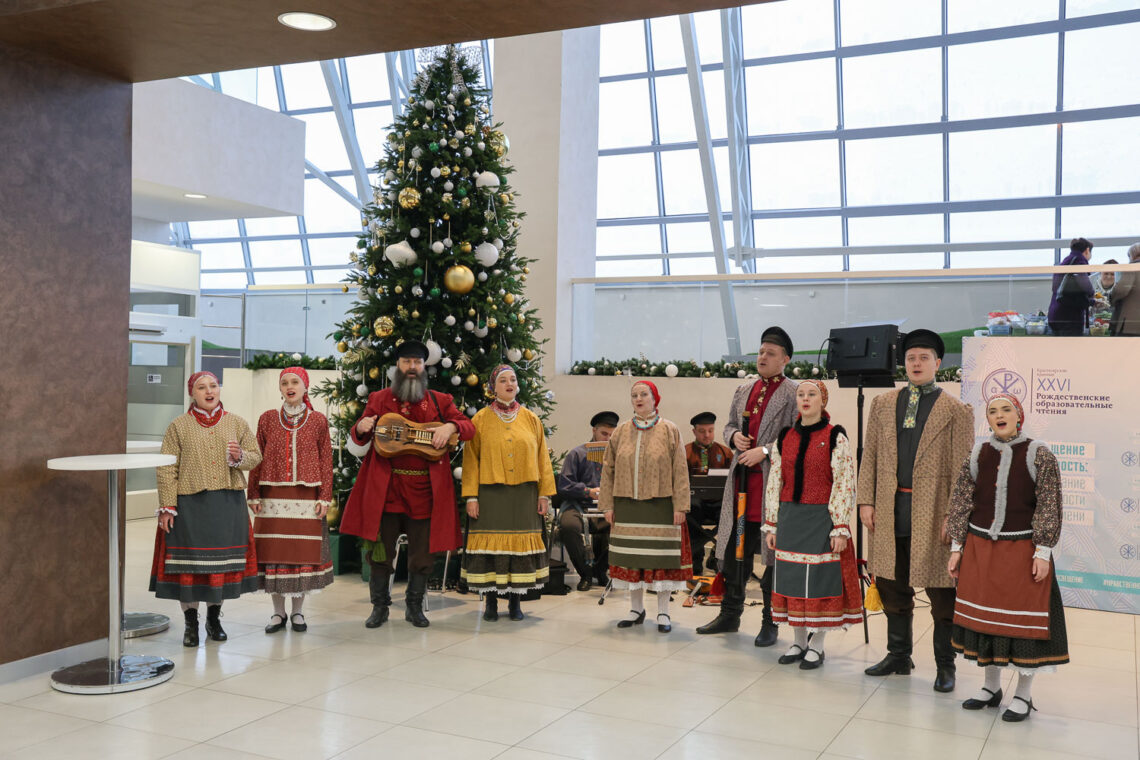 15 января в конгресс-холле Сибирского федерального университета в рамках XXVI Красноярских краевых Рождественских образовательных чтений состоялся святочный концерт ансамбля народной песни «Сибирская вечора».
