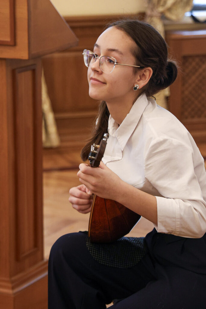 Для участников секции с музыкальным номером выступила воспитанница воскресной школы храма Иоанна Предтечи города Красноярска Марина Теленкова, исполнив русскую народную песню «По улице не ходила не пойду» и произведение А. Власова «Мелодия».