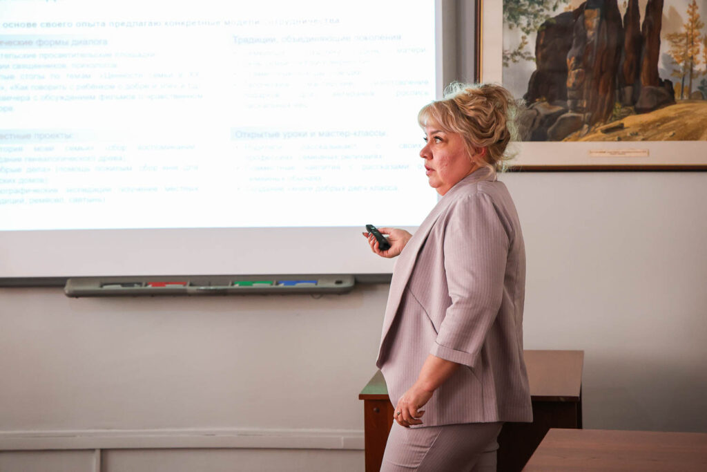 Данная секция посвящена выстраиванию диалога между учителями и родителями учащихся, выявлению возможных проблем, обсуждению совместных проектов с родителями. О работе секции рассказала один из её модераторов, преподаватель кафедры дисциплин общественно-научного цикла и технологий воспитания Красноярского краевого института развития образования Татьяна Комарова:
